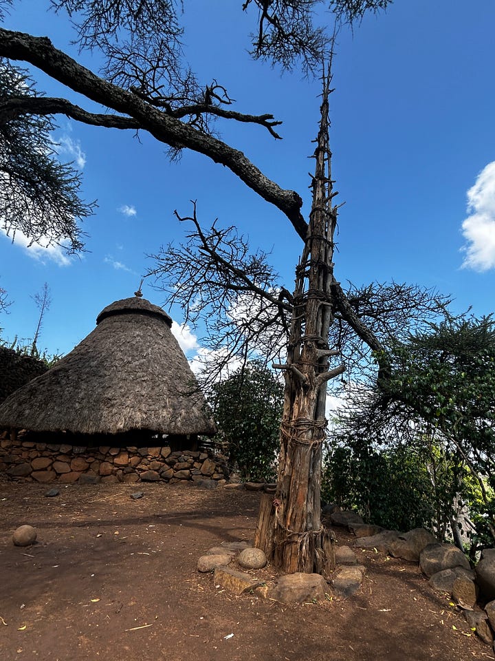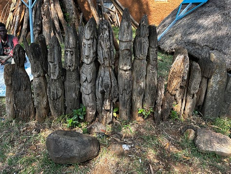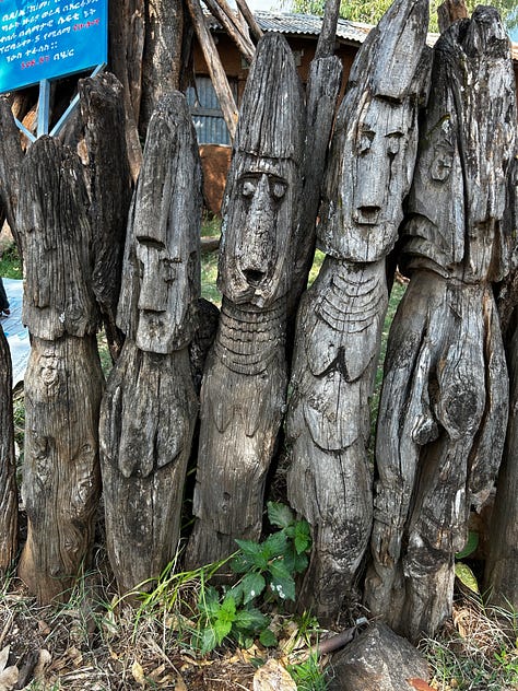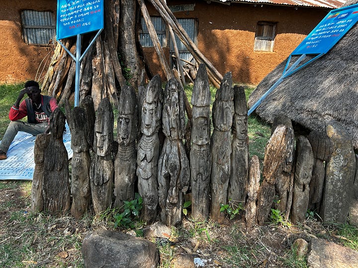 The totems were vandalised and sold, so now they are protected in museums. There are a few that are guarded at the police station close by, so Taffesse stopped and insisted that I be able to see them with a small “visitation” fee that was charged. As much as I love seeing these totems, I was saddened that they were not cared for, left in the open. I wish they could be preserved for posterity; they are slowly eroding, like the community's life and practices.
