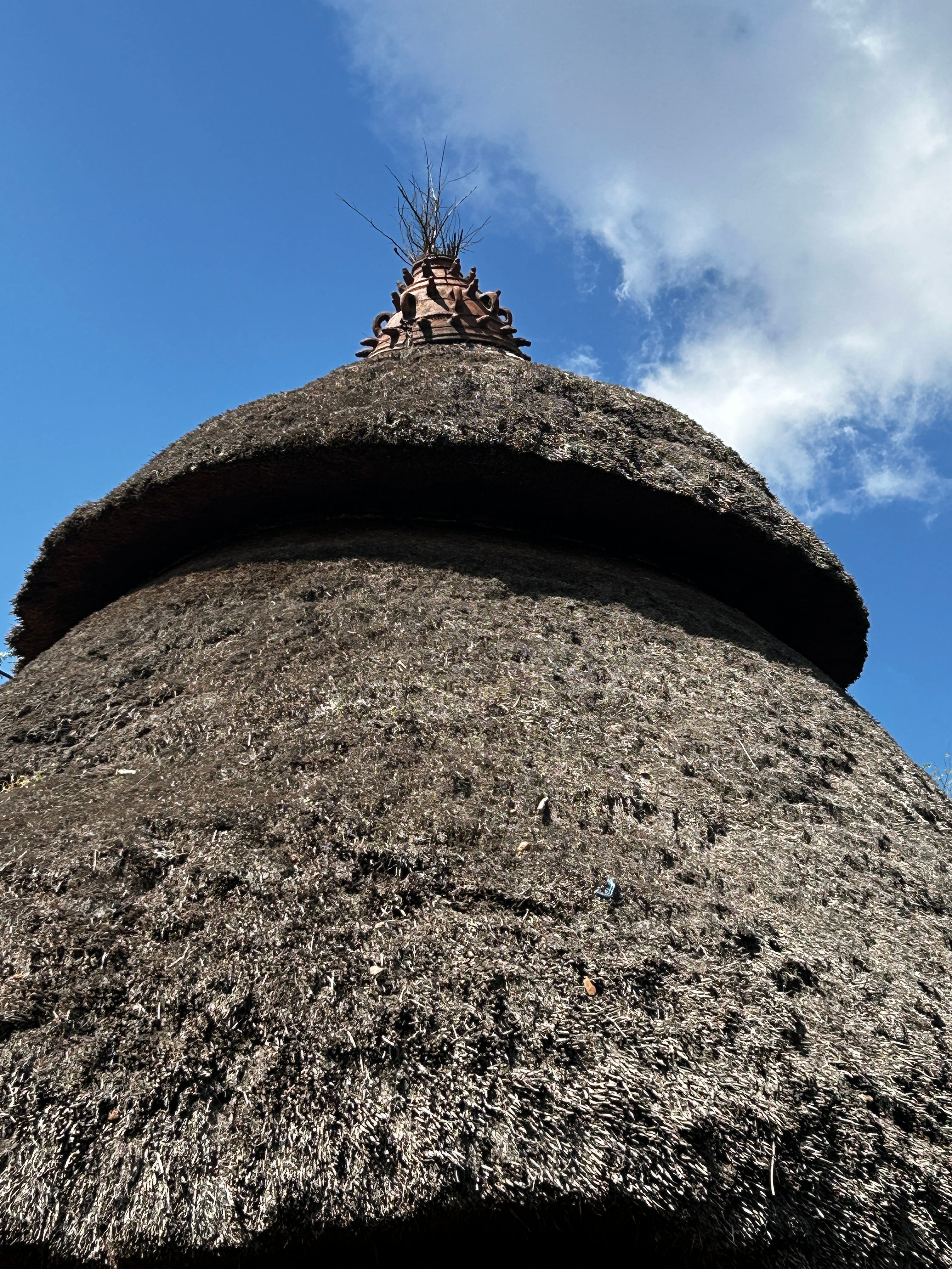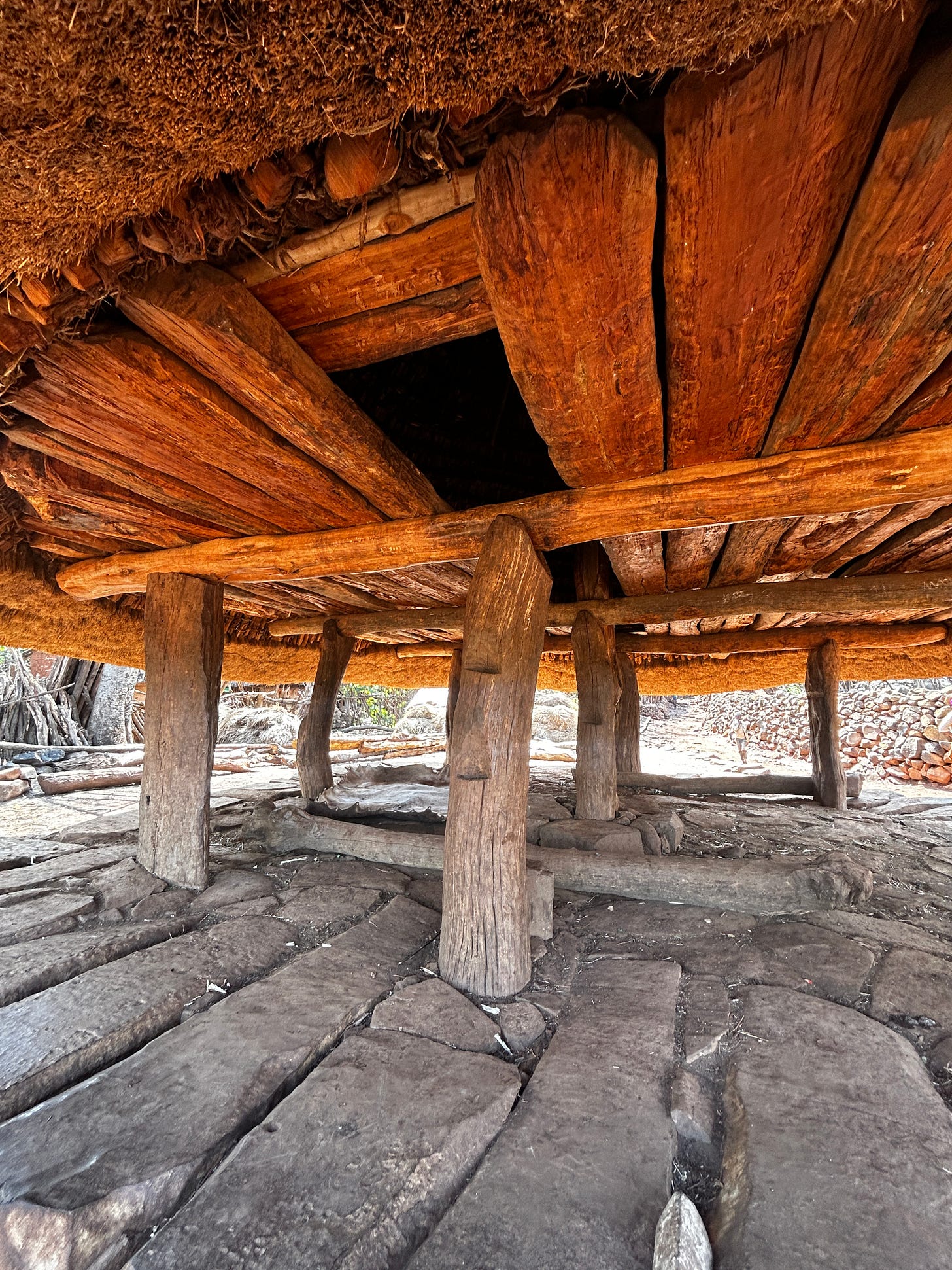 At the centre of the village is the Community center, usually the largest building in the village. There can be multiple Community centres in the village, depending on its size. The front is always an open small field, where the elders and community members gather for meetings and celebrations. The Community centre is built on stilts, with a hole in the centre for thenadolecents to climb into and sleep for the night.The stilts are notched to make the climb easier. At the top of the Community centre is a huge dome, the “phallic symbol” that symbolises that the space is reserved for males only.