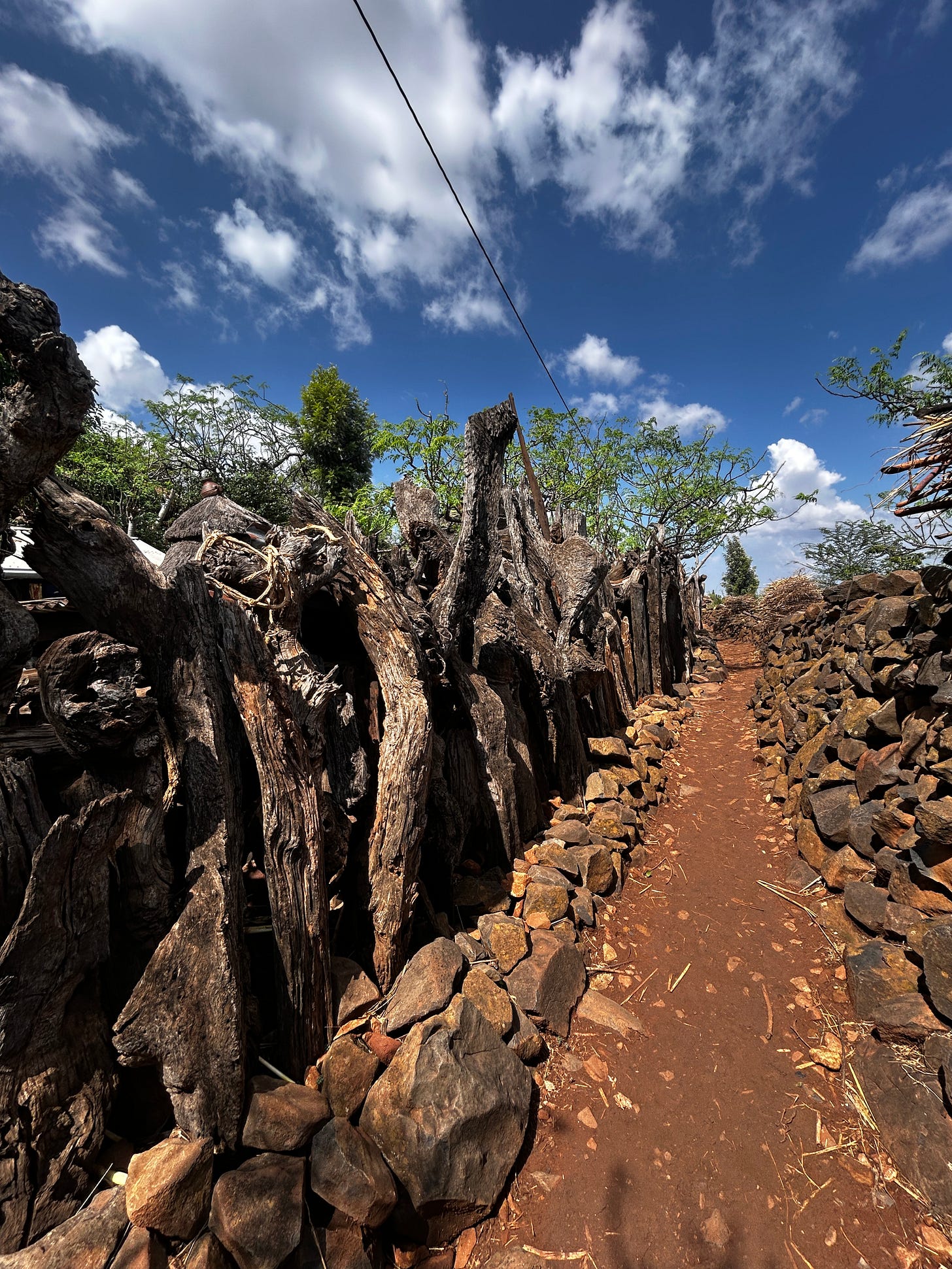 The Konso villages are significant, especially for their construction. The community is based on an age-based system, and the social structure of the village is based on age. The oldest part of the village began in the centre, a short, about 4-foot stone wall built around the initial circular settlement. As the family grows, only the firstborn son inherits the house and lives with his parents. The other siblings must at some point leave the house, and they set up a second community outside the first circle in a second concentric c circle. All concentric circles must share common features, the most important being three unique entrances, the main entrance to welcome people, the second entrance to bring water, and the third entrance for the toilet. So, within this network of narrow paths and lanes, which sometimes feel like a maze, is a unified structure. Talking of a maze, the lanes are built with low stone walls and are narrow for protection against invaders.